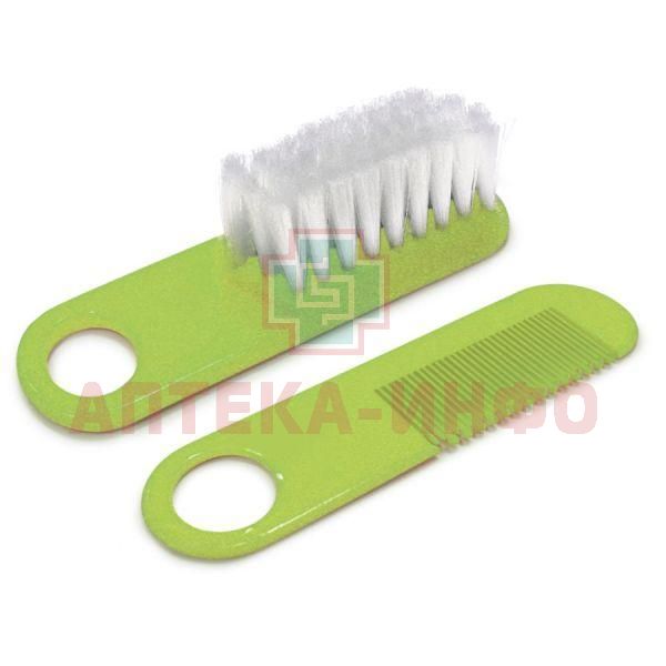 Набор расческа и щетка фирмы "Сказка" выполнен из безопасного пластика, нейлона и термопластичной резины. Обратите внимание на то, что перед первым применением и щетку, и расческу необходимо тщательно промыть.