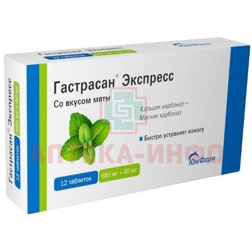 Гастрасан Экспресс таб. жев. 680мг+80мг №12 (мята) Южфарм