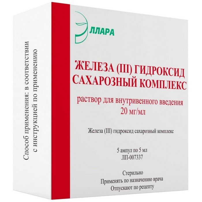 Железа (III) гидроксид сахарозный комплекс амп. (р-р д/в/в введ.) 20мг/мл 5мл №5 Эллара