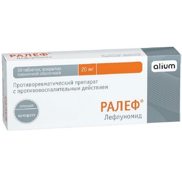 - Действующее вещество: лефлуномид 10 мг/20 мг.
