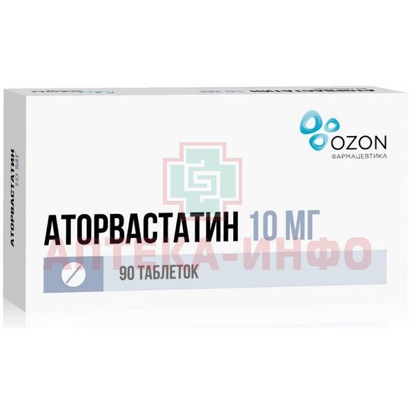 Аторвастатин таб. п/пл. об. 10мг №90 (30х3) Озон/Россия