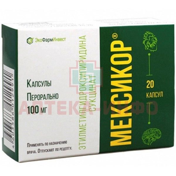 - Мексикор® назначают внутрь. Начальная доза составляет 100 мг (1 капс.) 3 раза/сут. Далее следует постепенно увеличивать дозу в зависимости от клинического течения заболевания и переносимости проводимой терапии. Максимальная суточная доза не должна превышать 800 мг, разовая - 200 мг. Суточную дозу препарата желательно распределить на несколько приемов в течение дня. Курс лечения Мексикором заканчивают постепенно, уменьшая ежедневно дозу препарата на 100 мг.