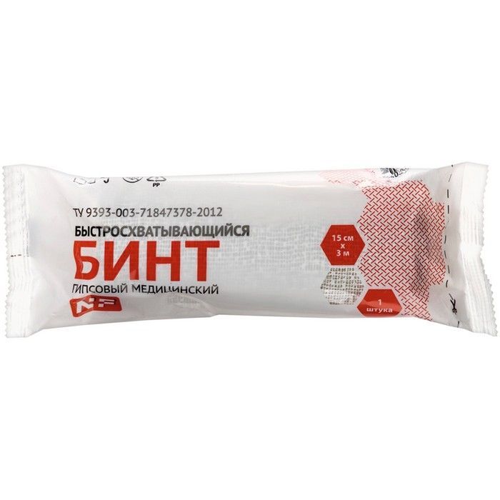 - Бинт гипсовый медицинский нестерильный 15 см х 3 м - 1 шт в уп