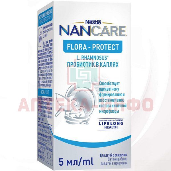 - NANCARE Flora Protect - это пробиотик в каплях для восстановления состава кишечной микрофлоры, в том числе на фоне или после перенесения антибактериальной терапии у детей с рождения. Способствует адекватному восстановлению кишечной микрофлоры.