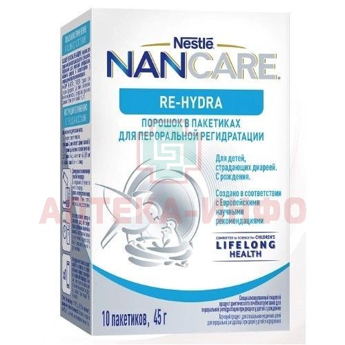 - NANCARE Re-Hydra (Ре-Хайдро) - порошок в пакетиках для пероральной регидратации. Предназначен для коррекции дегидратации, вызванной диареей и гастроэнтеритом у новорожденных и детей раннего возраста.