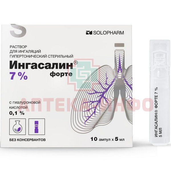 Ингасалин форте амп.(р-р д/ингал. гипертонич.) 7% 5мл №10 Гротекс/Россия