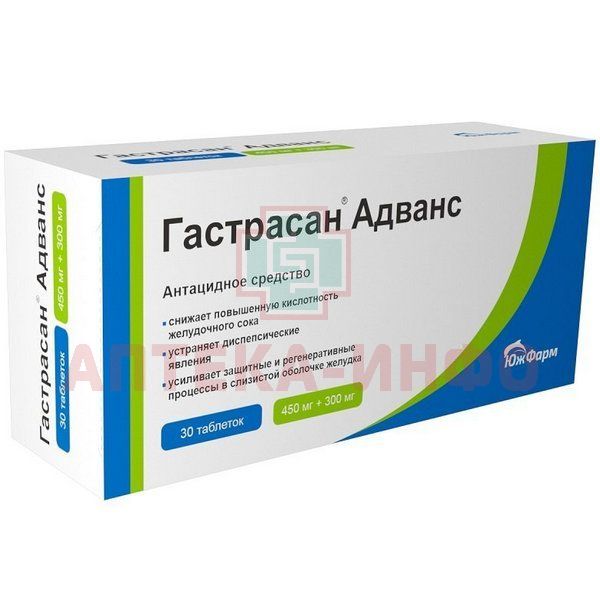- Препарат Гастрасан® Адванс - комбинированное антацидное средство, которое снижает повышенную кислотность желудочного сока и не оказывает стимулирующего влияния на секрецию желудочного сока.