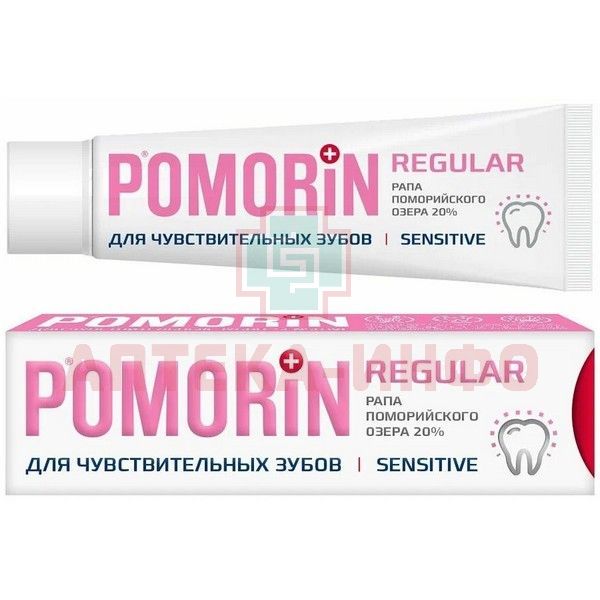 - Паста для ежедневного ухода за чувствительными зубами POMORIN Regular Sensitive активно снижает чувствительность зубов, насыщает эмаль необходимыми минералами, восстанавливая и укрепляя ее. Современный уникальный состав содержит активное действующее вещество - Рапу Поморийского озера.