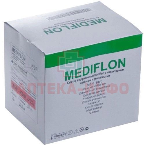 - Катетер внутривенный с инжекторным клапаном и фиксаторами Mediflon G 20 в инд/уп