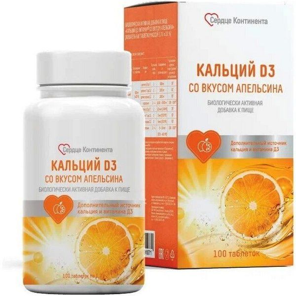 Кальций Д3 Сердце Континента таб. №100 (апельсин) Квадрат-С