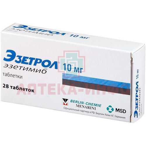 - Для дополнительного снижения сердечно-сосудистых событий у пациентов с ИБС Эзетрол® 10 мг может применяться со статином с доказанным эффектом по снижению риска развития сердечно-сосудистых осложнений.