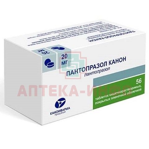 Пантопразол Канон таб. кишечнораств. п/пл. об. 20мг №56 Канонфарма Продакшн