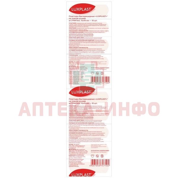- LUXPLAST ПЛАСТЫРИ МЕДИЦИНСКИЕ БАКТЕРИЦИДНЫЕ НА ТКАНОЙ ОСНОВЕ В СТРИПАХ