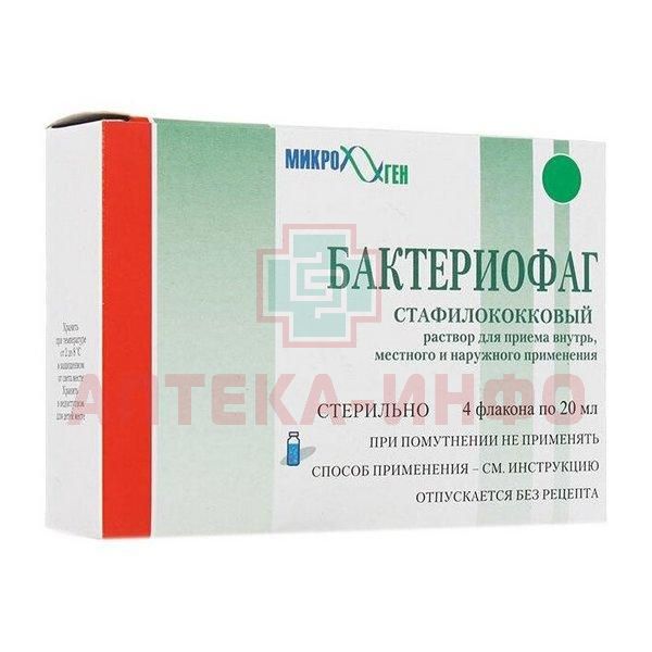 Бактериофаг стафилококковый фл.(р-р местно, орал.) 20мл №4 Микроген НПО(Иммунопрепарат, г. Уфа)