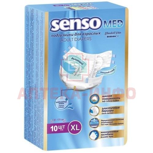 - SENSO MED ПОДГУЗНИКИ ДЛЯ ВЗРОСЛЫХ ОДНОРАЗОВЫЕ STANDART PLUS - для людей с тяжелой степенью инконтиненции (недержания).