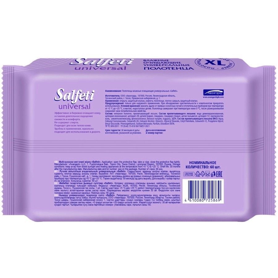 - SALFETI ПОЛОТЕНЦА ВЛАЖНЫЕ ОЧИЩАЮЩИЕ УНИВЕРСАЛЬНЫЕ - большого размера XL. Подходят для всех типов кожи