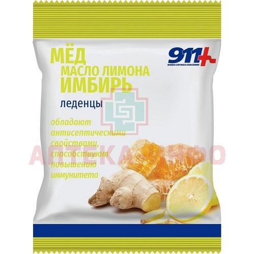 - 911 ВАША СЛУЖБА СПАСЕНИЯ ЛЕДЕНЦЫ МЕД ИМБИРЬ С ВИТАМИНОМ С - Биологически активная добавка (БАД) к пище