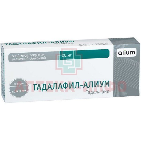 Тадалафил-Алиум таб. п/пл. об. 20мг №8 Алиум
