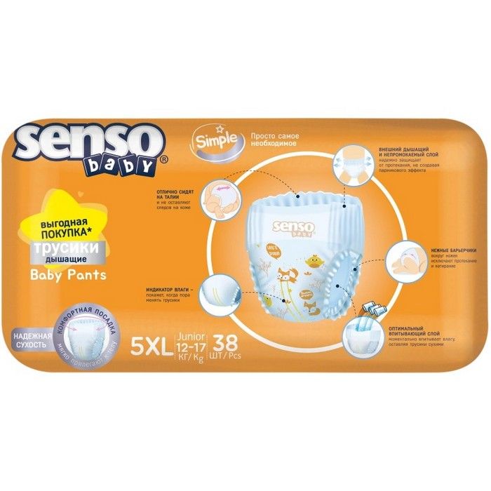 - Senso Baby Simple Подгузники-трусики от 12 до 17 кг (размер XL / 5)