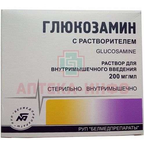 Глюкозамин амп.(конц. д/приг. р-ра д/в/м введ.) 200мг/мл 2мл №5+р-ль амп. 1мл №5 Белмедпрепараты/Беларусь