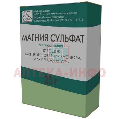 - Действующее вещество: магния сульфата гептагидрат 25 г