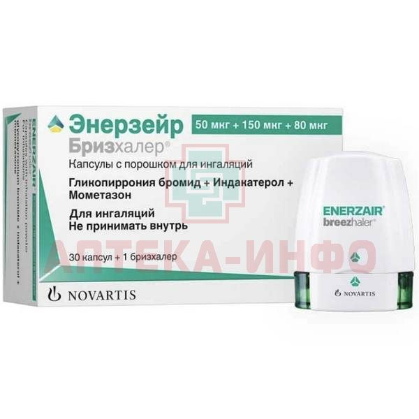 Энерзейр Бризхалер капс. с порошком д/ингаляций 50мкг+150мкг+80мкг №30 + устр. д/ингаляций Novartis Pharma Stein AG/Швейцария
