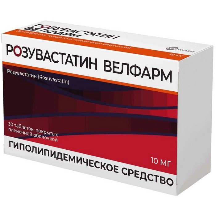 Розувастатин таб. п/пл. об. 10мг №30 Велфарм