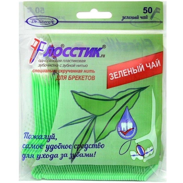 Зубочистки DR. STEVE с нитью д/брекетов №50 (зеленый чай) Стилкон/Россия