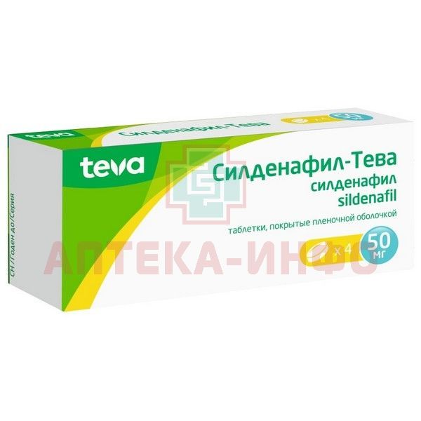 Силденафил-Тева таб. п/пл. об. 50мг №4 Actavis Ltd./Мальта
