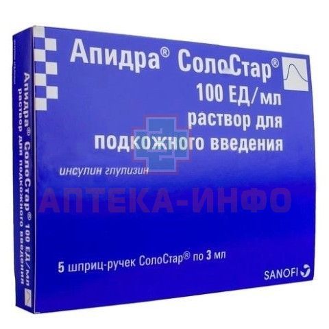 Апидра СолоСтар шпр.-ручка(р-р для п/к введ.) 100ЕД/мл 3мл №5 Sanofi-Aventis Deutschland/Германия/Санофи-Авентис Восток
