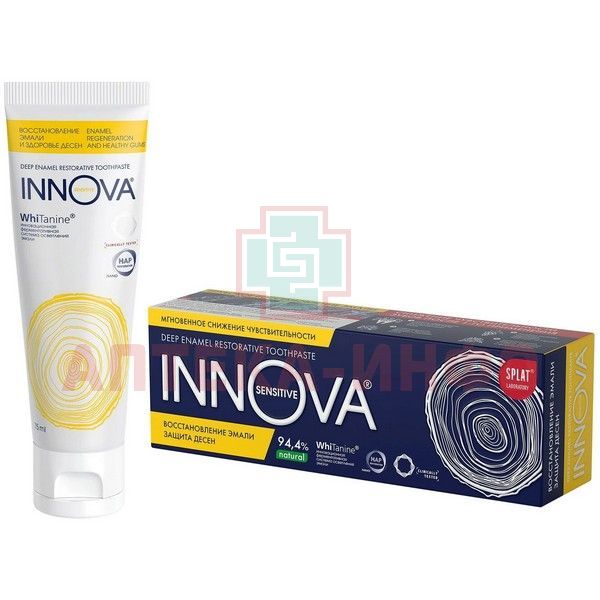 - Укрепляющая зубная паста ИННОВА ВОССТАНОВЛЕНИЕ ЭМАЛИ И ЗДОРОВЬЕ ДЕСЕН с терапевтической дозировкой Гидроксиапатита (2,25%) в активной наноформе действует подобно жидкой пломбе: проникает глубоко в открытые дентинные канальцы и полностью их закрывает, укрепляет эмаль, снижает чувствительность зубов, в том числе в пришеечной области, а также снижает кровоточивость и воспаление десен*.