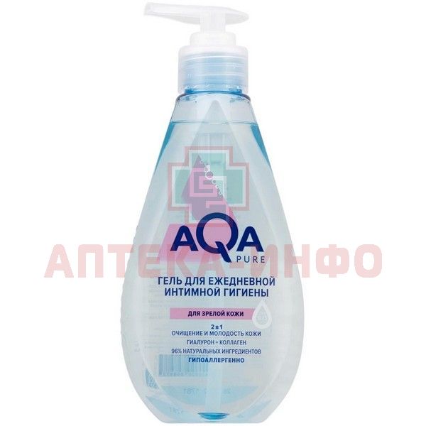 - AQA PURE ГЕЛЬ ДЛЯ ЕЖЕДНЕВНОЙ ИНТИМНОЙ ГИГИЕНЫ ДЛЯ ЗРЕЛОЙ КОЖИ - нежная формула создана для деликатного очищения и поддержания естественной микрофлоры интимной зоны зрелой женщины.