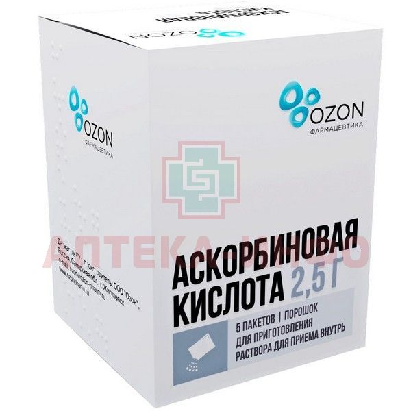 Аскорбиновая кислота пак.(пор. д/приг. р-ра д/приема внутрь) 2,5г №5 Озон/Россия