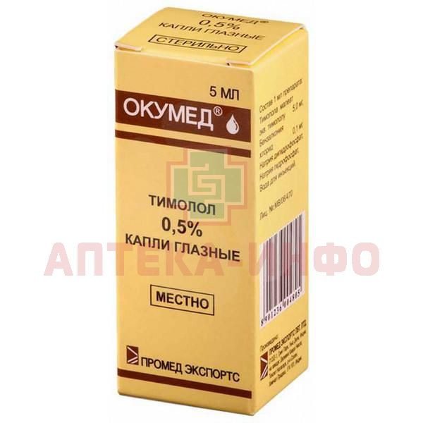 При совместном использовании глазных капель Окумед с каплями для глаз, содержащими эпинефрин, может развиться расширение зрачка. Не рекомендуется закапывать в глаза два бета-адреноблокатора из-за риска развития побочных эффектов, поэтому препарат не применяют с каплями, содержащими эпинефрин и пилокарпин.