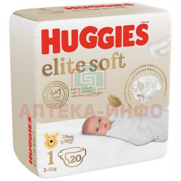- HUGGIES ПОДГУЗНИКИ ELITE SOFT для малышей весом от 3 до 5 кг (размер 1)
