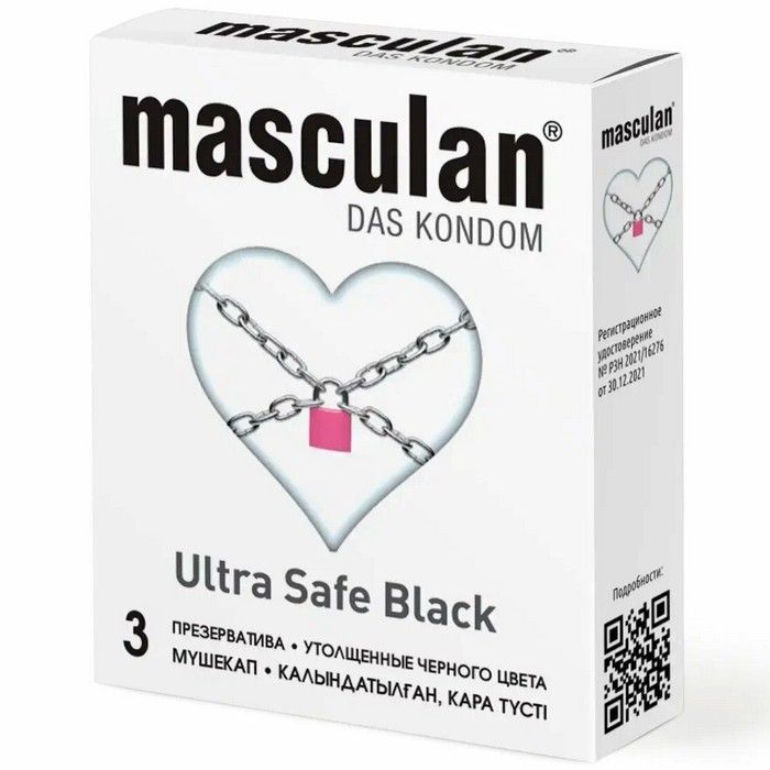 - Презервативы masculan Ultra Safe Black - презервативы для длительного, интенсивного полового акта и эмоционального разнообразия ощущений в половом акте за счет визуального восприятия презерватива, с утолщенной стенкой, черного цвета из натурального латекса с силиконовой смазкой резервуаром.