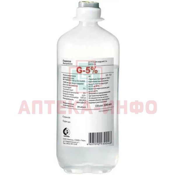 Раствор для инфузий 5% - 100 мл: декстроза 5 г.
