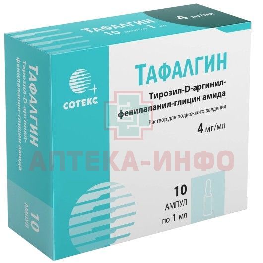 - Каждая ампула содержит 4 мг тирозил-D-аргинил-фснилаланил-глицин амида ацетата (тафалгин) в пересчёте на тирозил-D-аргинил-фенилаланил-глицин амид.