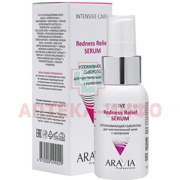- ARAVIA PROFESSIONAL СЫВОРОТКА УСПОКАИВАЮЩАЯ ДЛЯ ЧУВСТВИТЕЛЬНОЙ КОЖИ С КУПЕРОЗОМ REDNESS RELIEF SERUM - для чувствительной кожи с признаками купероза
