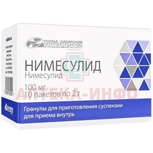Нимесулид пак.(гран. д/приг. сусп. д/приема внутрь) 100мг 2г №10 Усолье-Сибирский ХФЗ