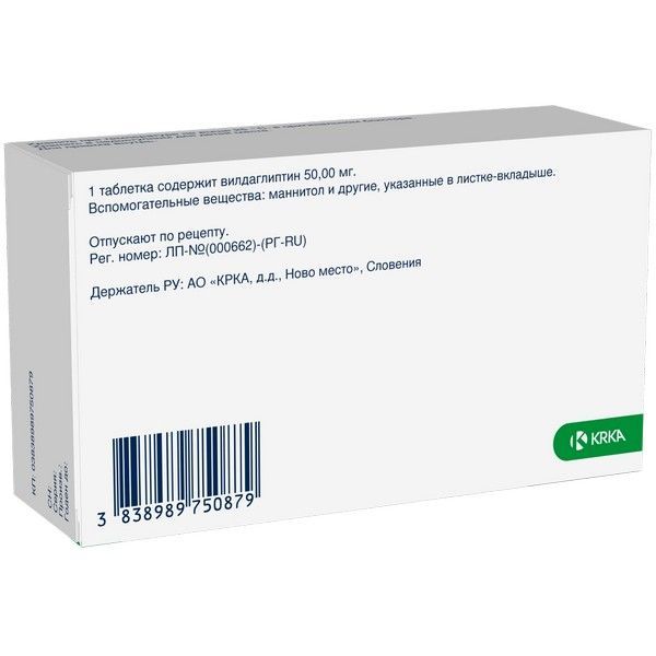 - Каждая таблетка содержит 50 мг вилдаглиптина.