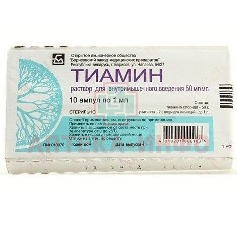 Тиамин амп.(р-р д/в/м введ.) 50мг/мл 1мл №10 короб. карт. Борисовский ЗМП/Беларусь