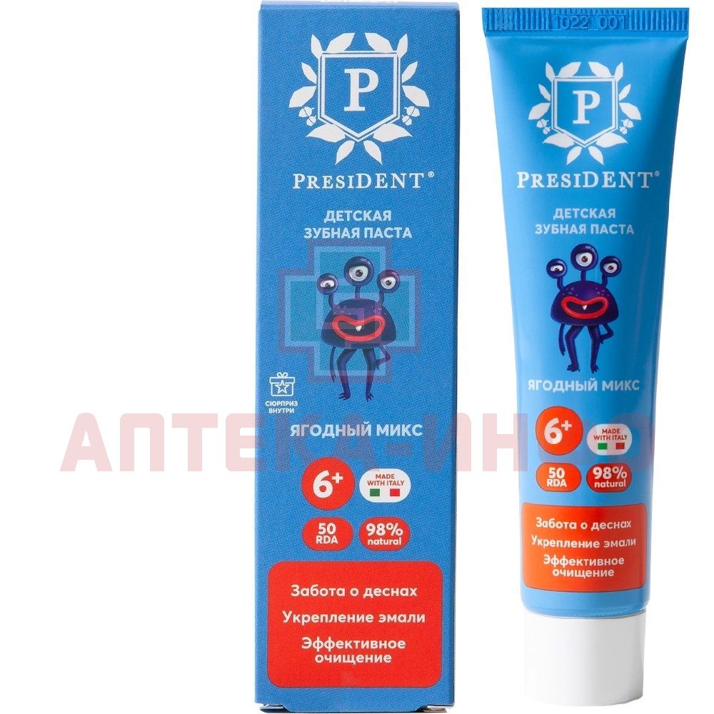 - ПРЕЗИДЕНТ ЗУБНАЯ ПАСТА ДЕТСКАЯ ЯГОДНЫЙ МИКС - обеспечивает заботу о деснах, укрепление эмали и эффективное очищение.
