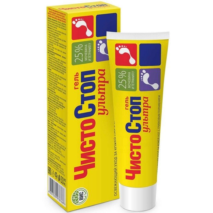 Для профилактики грибка рекомендуется применять средства с высоким содержанием мочевины (25%) в комплексе с противогрибковыми средствами.ЧИСТОСТОП УЛЬТРА ГЕЛЬ - это уход за утолщенной, огрубевшей кожей ног при грибковом поражении, посещении общественных бассейнов, саун, душевых, при повышенной потливости ног, сопровождающейся запахом, а также при склонности к гиперкератозу и трещинам стоп.