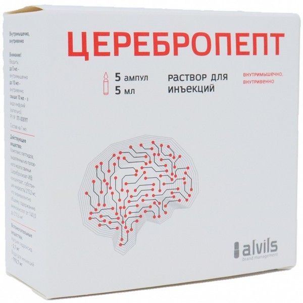 - Церебропепт содержит низкомолекулярные биологически активные нейропептиды, которые проникают через гематоэнцефалический барьер и непосредственно поступают к нервным клеткам. Препарат обладает органоспецифическим мультимодальным действием на головной мозг, т.е. обеспечивает метаболическую регуляцию, нейропротекцию, функциональную нейромодуляцию и нейротрофическую активность.