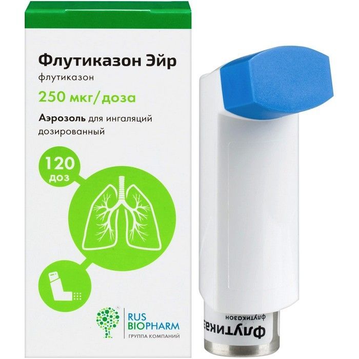 - Рекомендовано применять дозированный аэрозоль Флутиказон Эйр, содержащий 250 мкг в дозе.