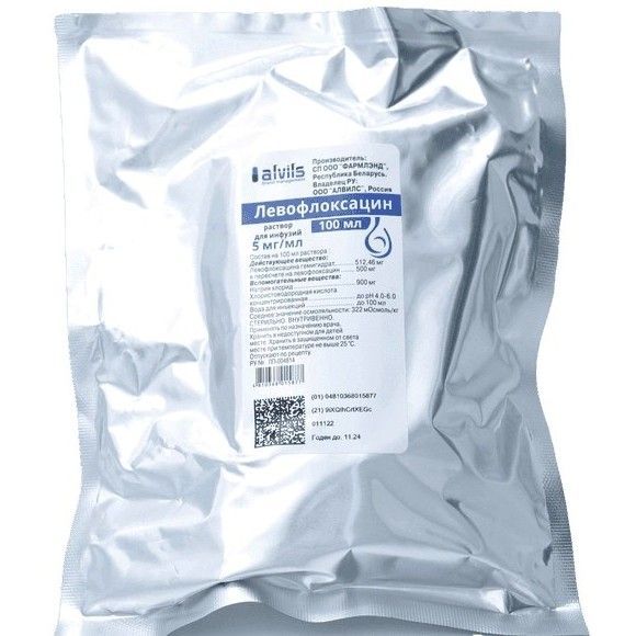 - Препарат Левофлоксацин следует вводить медленно путем внутривенной капельной инфузии, 1 или 2 раза в сутки. Продолжительность инфузии 1 флакона раствора препарата Левофлоксацин 500 мг (100 мл с 500 мг левофлоксацина) должна составлять не менее 60 мин, в случае введения половины флакона (50 мл с 250 мг левофлоксацина) продолжительность инфузии должна составлять не менее 30 мин (см. раздел «Особые указания»). Препарат Левофлоксацин совместим со следующими инфузионными растворами: 0,9 % раствор натрия хлорида, 5 % раствор декстрозы,