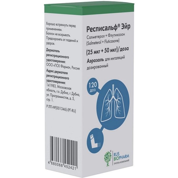 Респисальф Эйр баллон (аэр. д/ингал. дозир.) 25мкг+50мкг/доза 120доз №1 ПСК Фарма