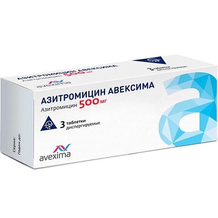 Азитромицин Авексима таб. дисперг. 500мг №3 Ирбитский ХФЗ/Россия