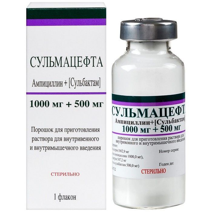 - Далее указаны суммарные дозы ампициллина и сульбактама (в соотношении 2:1).
